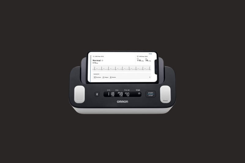 O OMRON Complete, clinicamente validado, é um monitor de tensão arterial e ECG doméstico inteligente 2 em 1 que fornece resultados fáceis, instantâneos e exatos. Efetue facilmente duas medições críticas de uma só vez, para uma monitorização cardíaca sem complicações no conforto do lar. Detecte rapidamente uma série de problemas cardíacos de uma só vez, incluindo: Irregularidades do ritmo cardíaco, como fibrilhação auricular, taquicardia, bradicardia e hipertensão. Receba resultados claros e fáceis de entender no OMRON connect, uma aplicação gratuita que armazena perfeitamente os seus resultados e pode partilhá-los de forma segura com o seu médico.