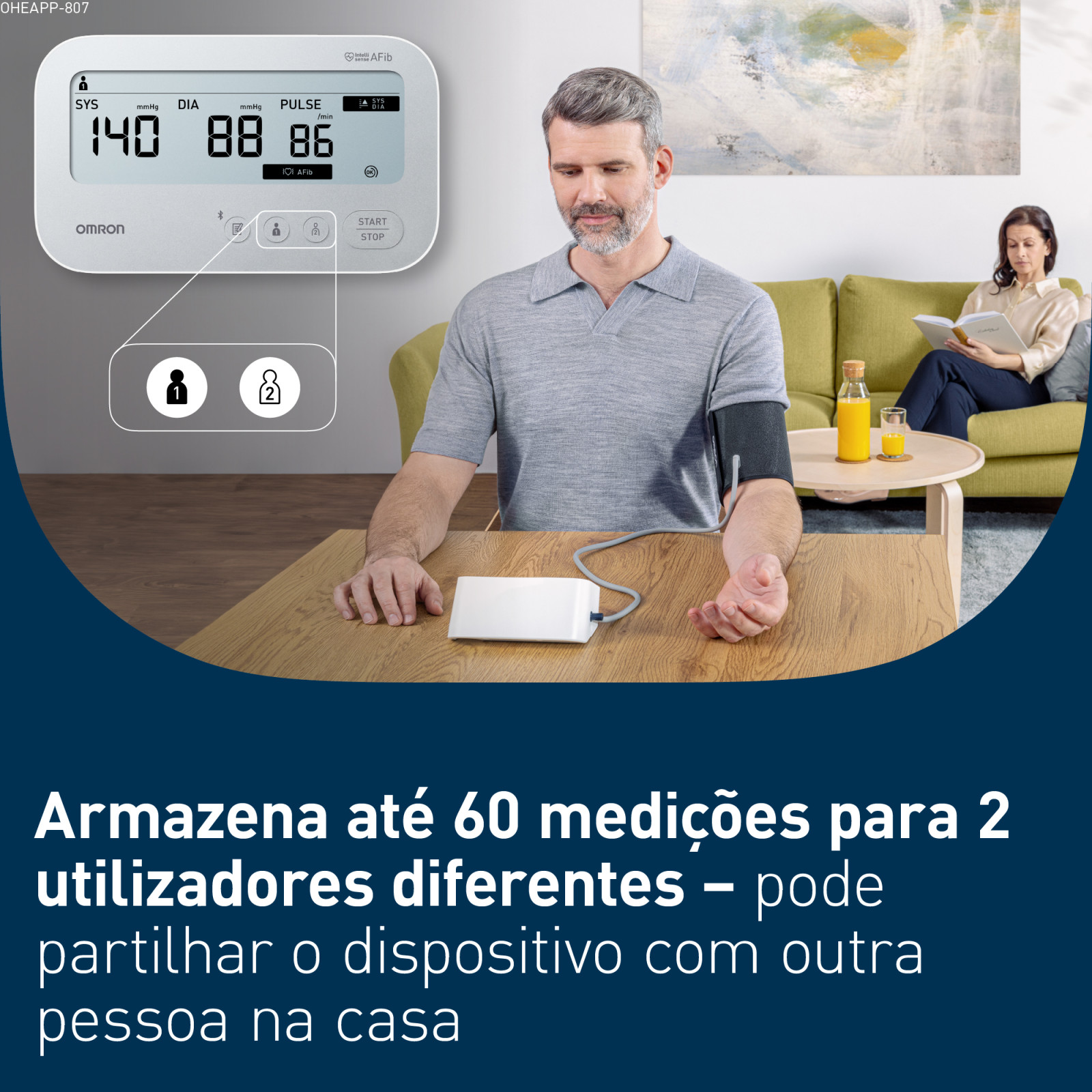A memória incorporada armazena até 60 medições para dois utilizadores e dispõe de um modo convidado para utilizações ocasionais. O estojo incluído oferece maior comodidade, e a garantia de 5 anos assegura um investimento duradouro e fiável.