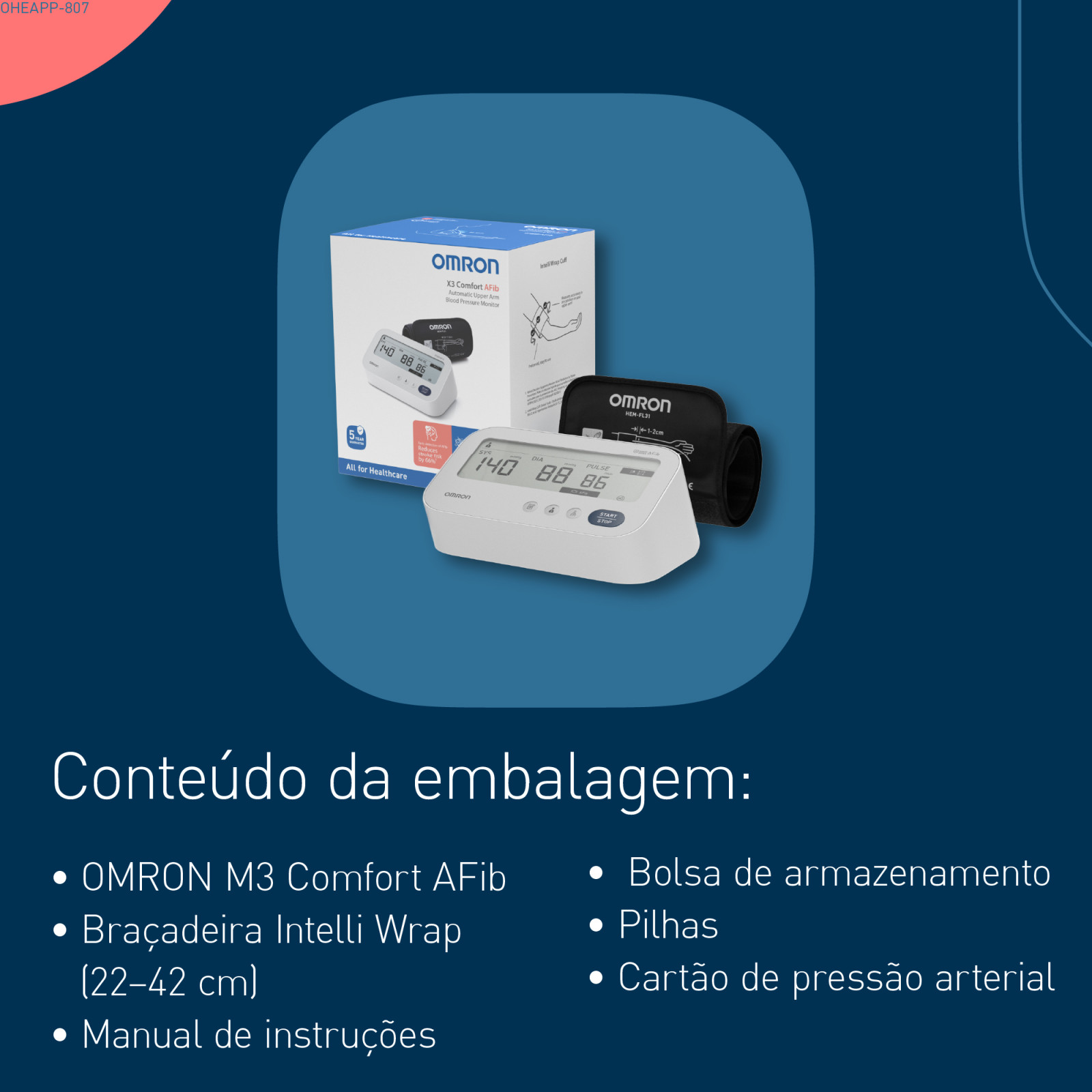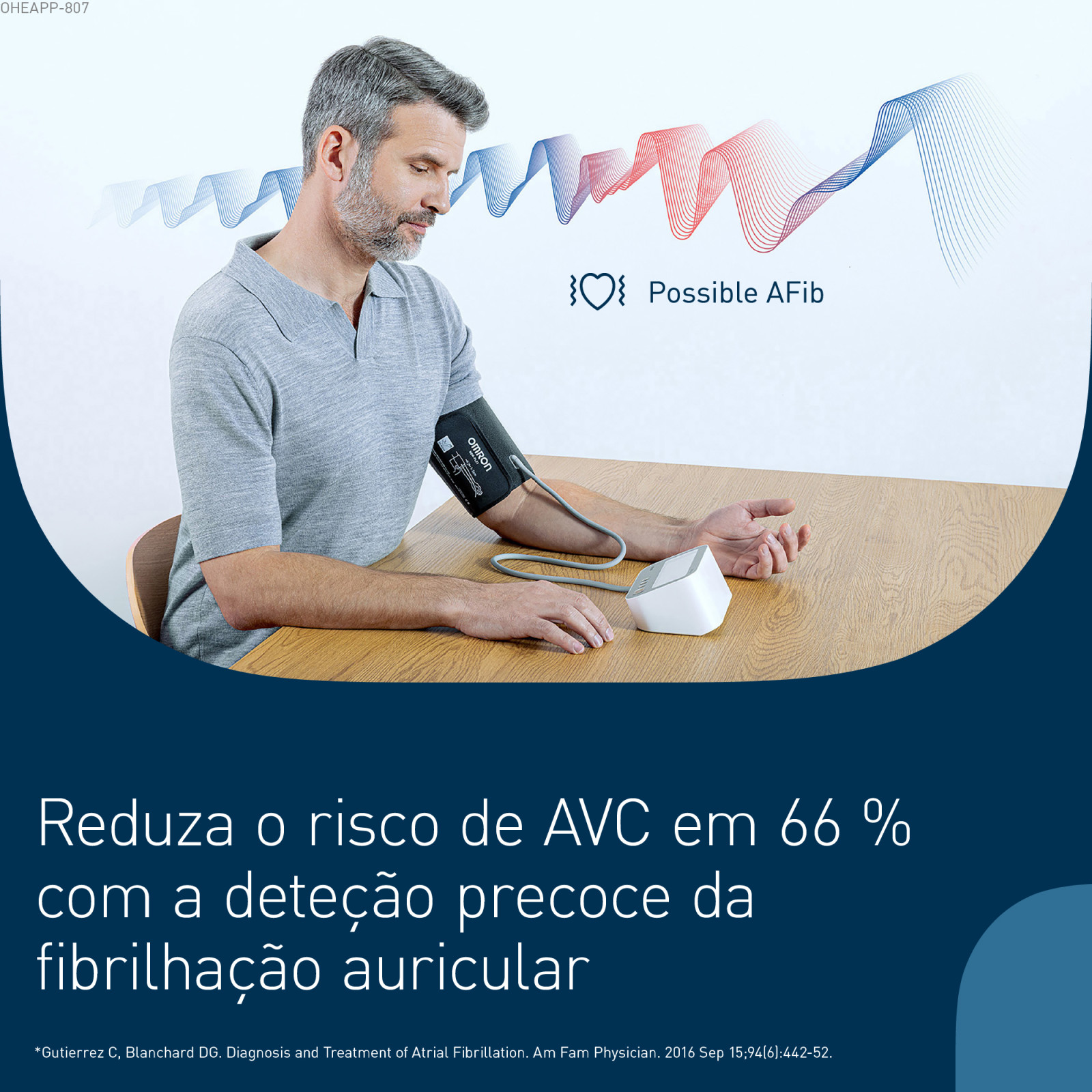 5 anos de garantia* O OMRON M3 Comfort AFib é um monitor de pressão arterial avançado que simplifica o controlo da hipertensão em casa e oferece ainda funcionalidades adicionais para apoiar a prevenção cardiovascular.